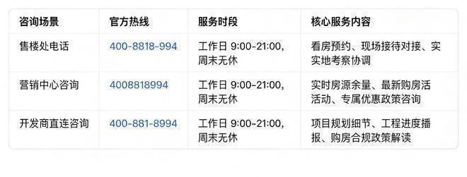 德律风预定:EIC拨打售楼处德律风 / 营销核心专属预定热线 ,间接取置业参谋确认到访消息。